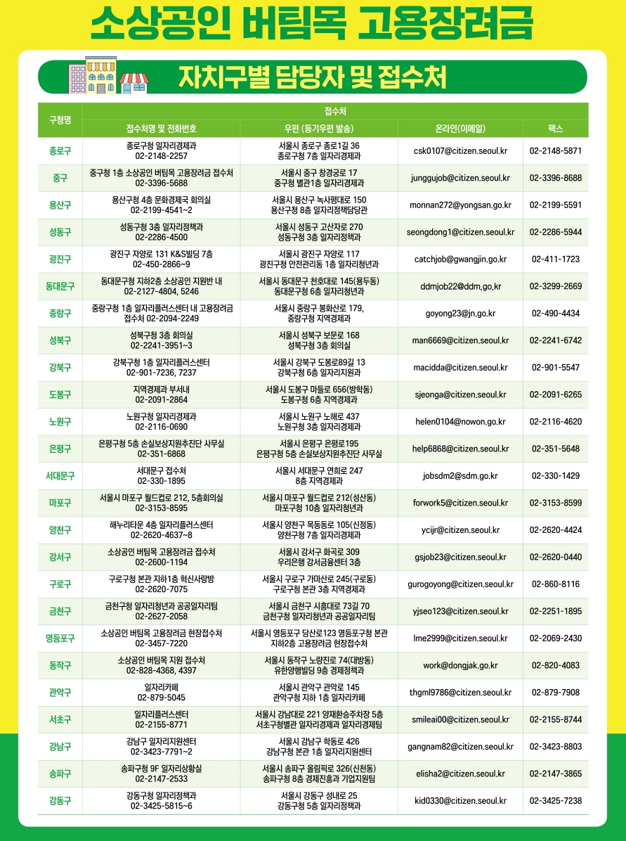 아래는 서울시 자치구별 담당자 및 접수처이므로 참고해주세요.